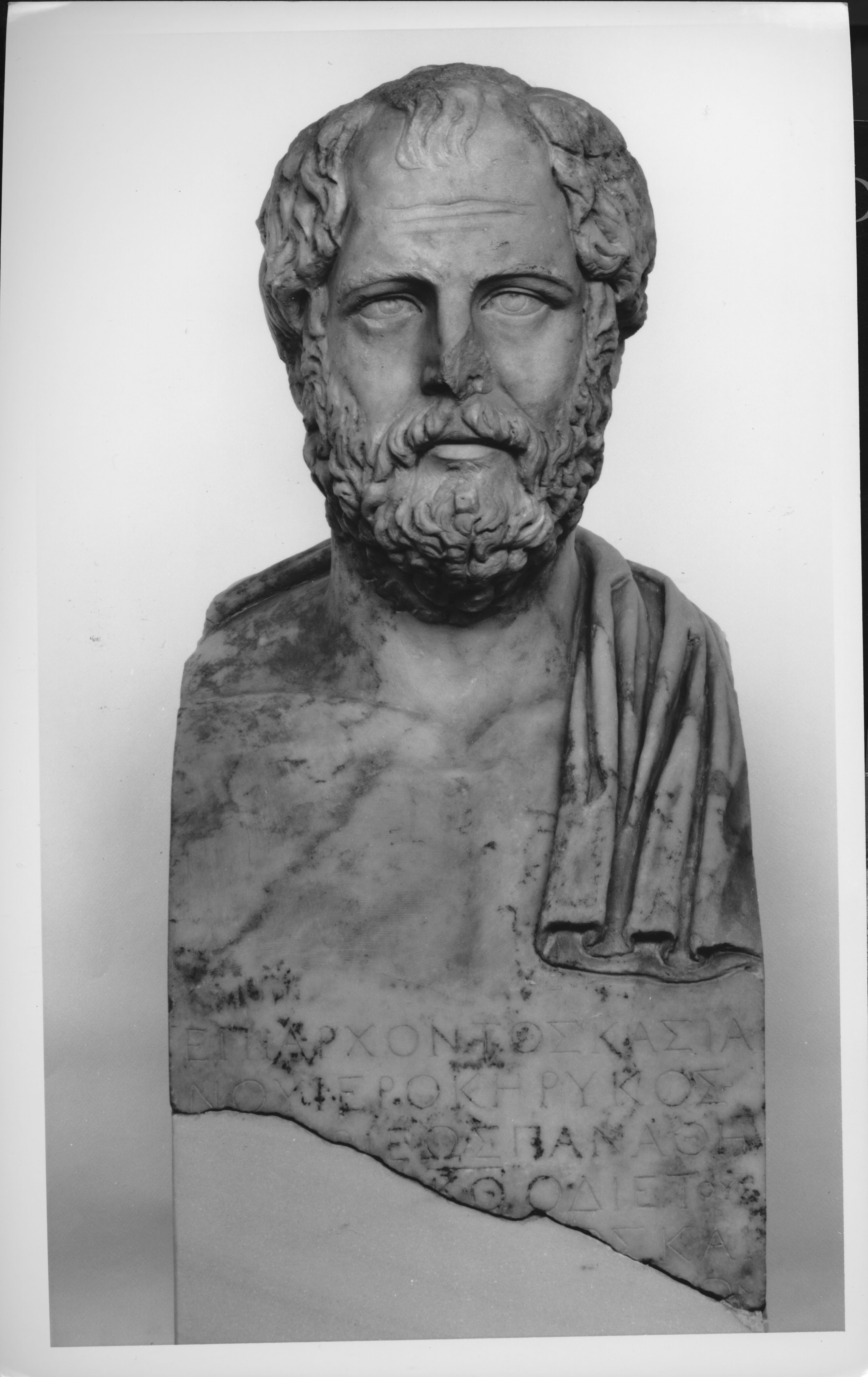 Εικονιστική κεφαλή κοσμητού με τμήμα ερμαϊκής στήλης