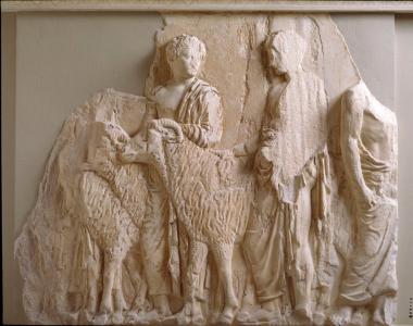 Λίθος IV. Βόρεια ζωφόρος Παρθενώνα. Νέοι οδηγούν κριάρια