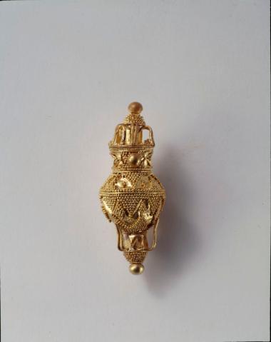 Χρυσή αγγειόσχημη χάντρα, στοιχείο περιδεραίου ή περίαπτο