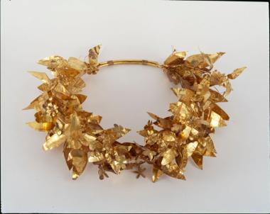 Χρυσό στεφάνι μυρτιάς, από κιβωτιόσχημο τάφο