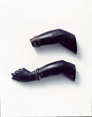 Δύο ανάγλυφα χέρια γυναικεία με επιχρυσωμένες λεπτομέρειες