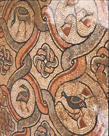 Βασιλική Α (Δουμετίου). Ψηφιδωτό δάπεδο του νάρθηκα, λεπτομέρεια.
