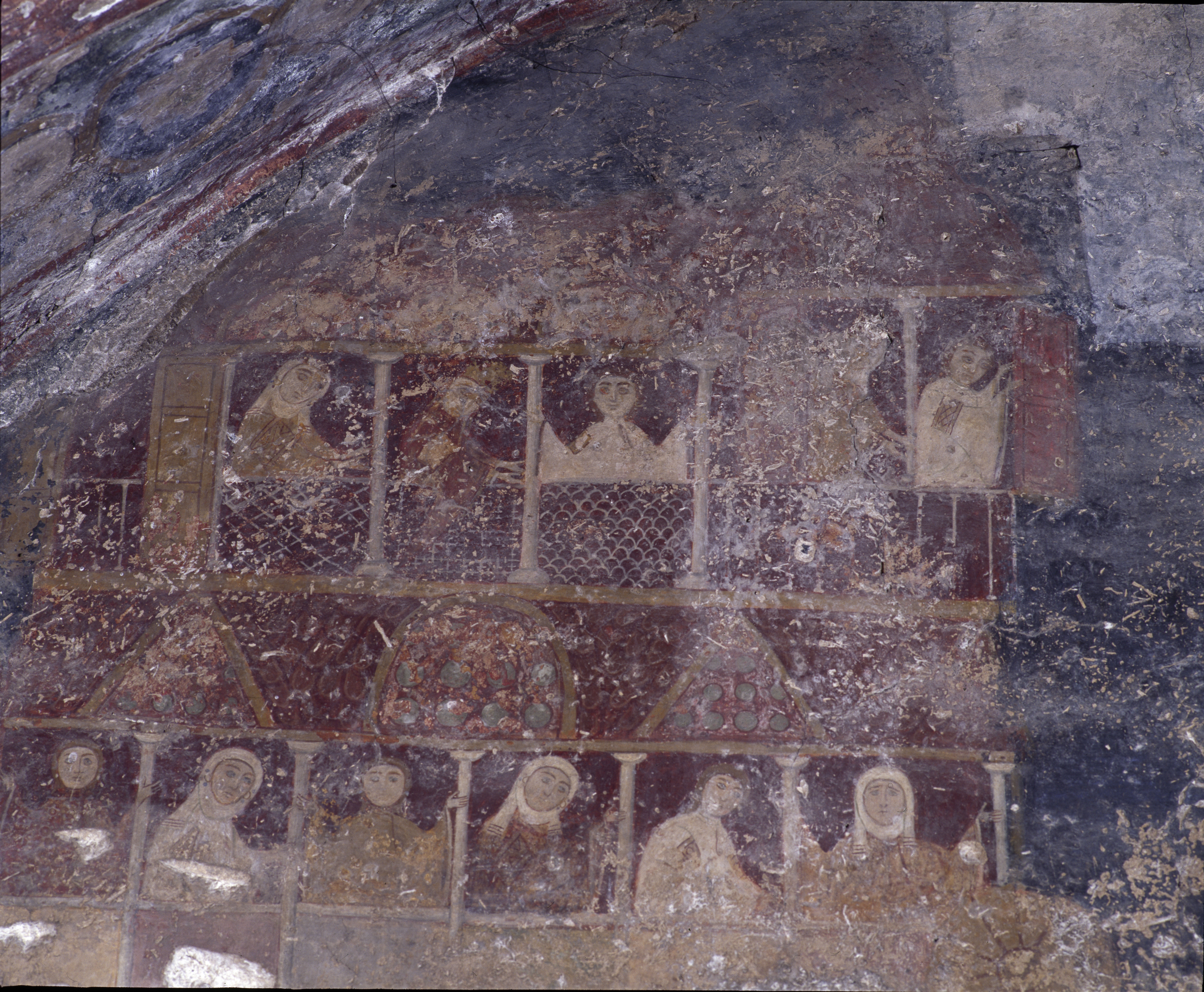 Τοιχογραφία της λιτανείας της εικόνας της Οδηγήτριας στη νότια αψίδα του νάρθηκα, λεπτομέρεια.
