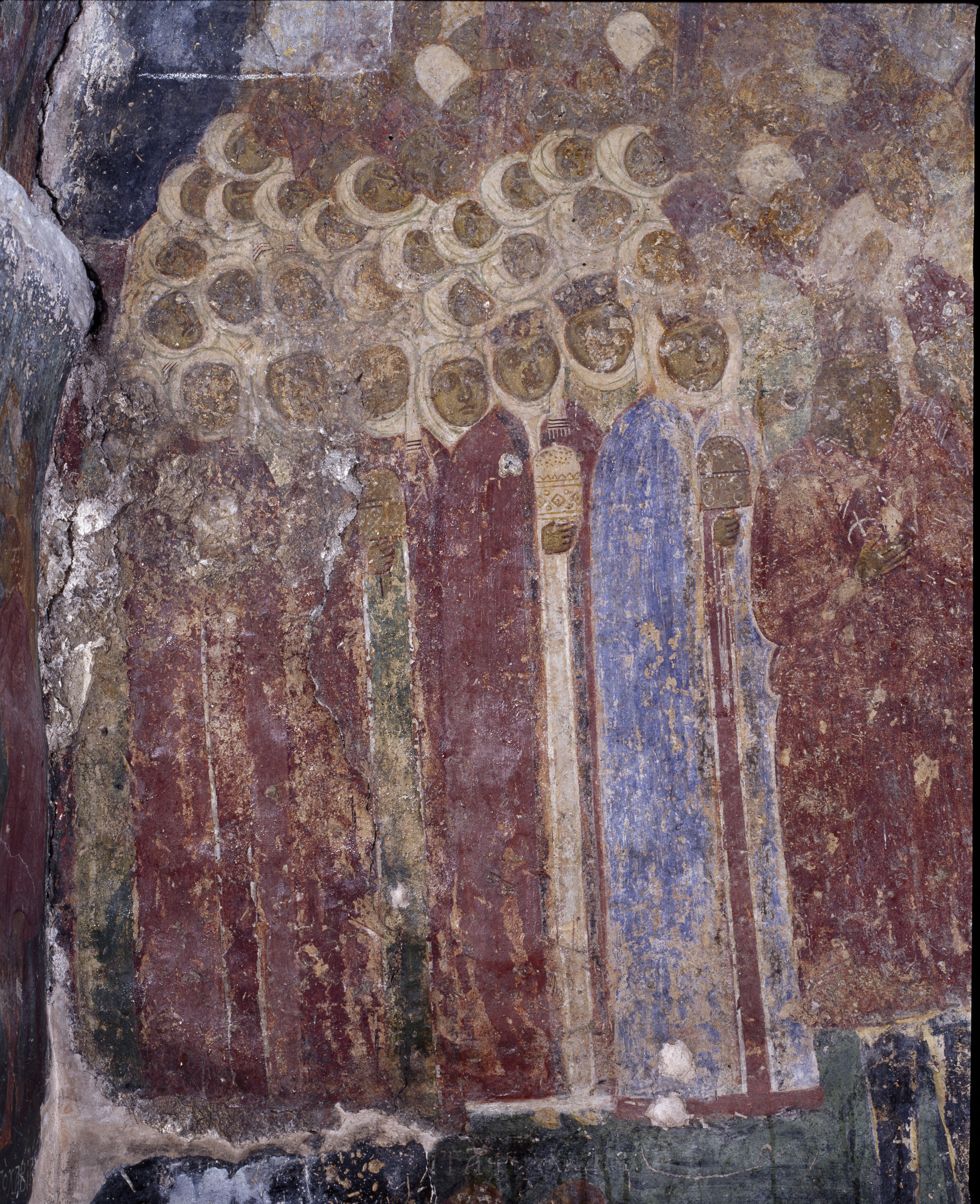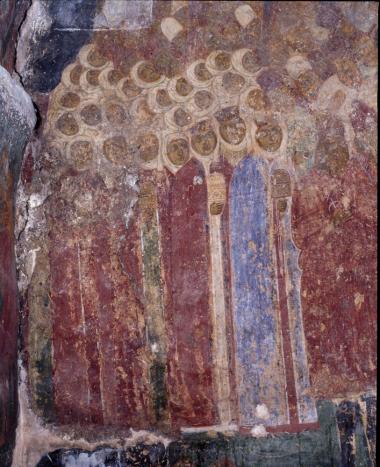 Τοιχογραφία της λιτανείας της εικόνας της Οδηγήτριας στη νότια αψίδα του νάρθηκα, λεπτομέρεια.