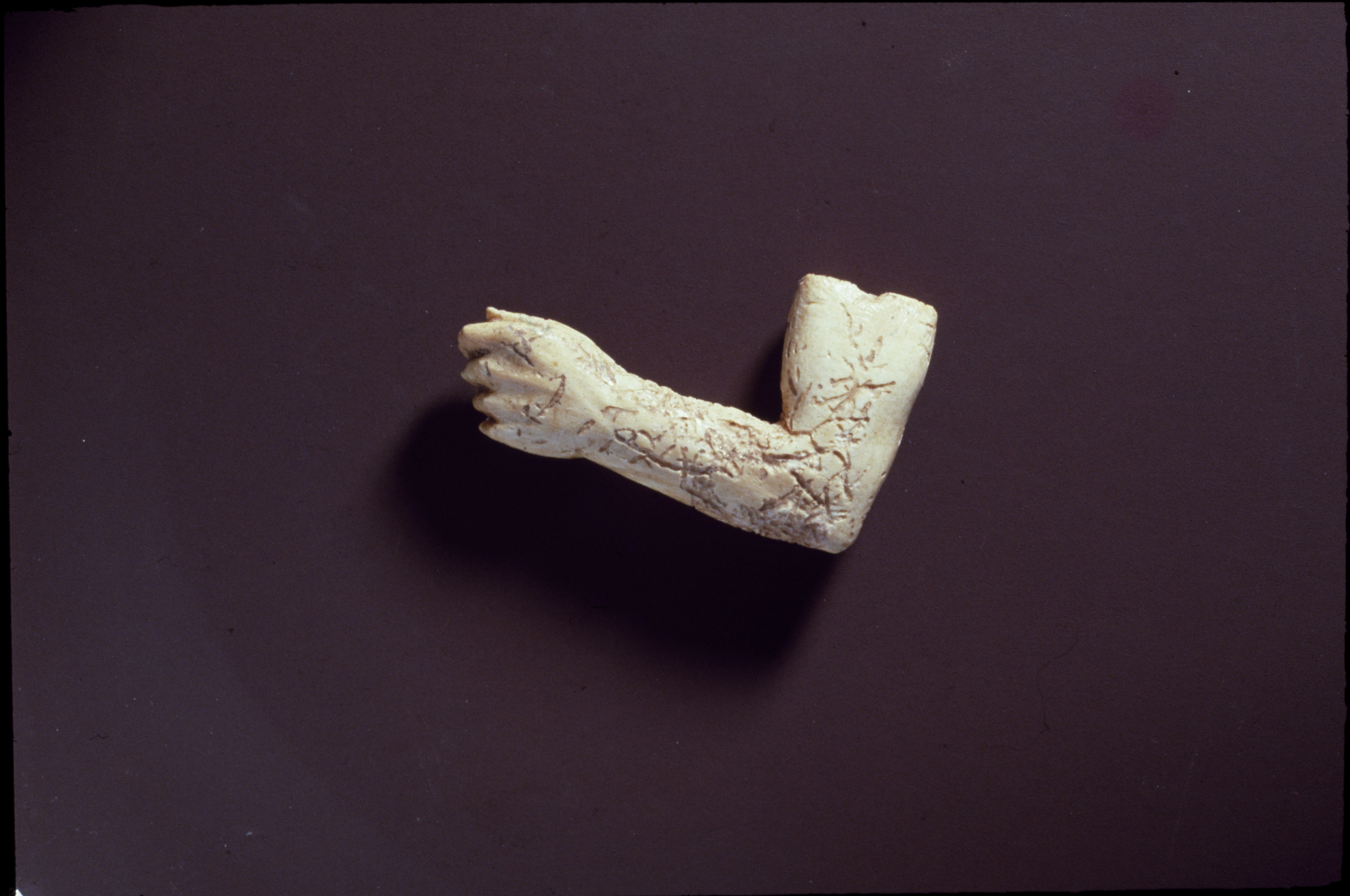 Ελεφαντοστέινο διακοσμητικό επίθημα, αριστερό χέρι ανθρώπινης μορφής από νεκρική κλίνη