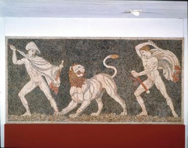 Ψηφιδωτό δάπεδο με παράσταση κυνηγιού λέοντα