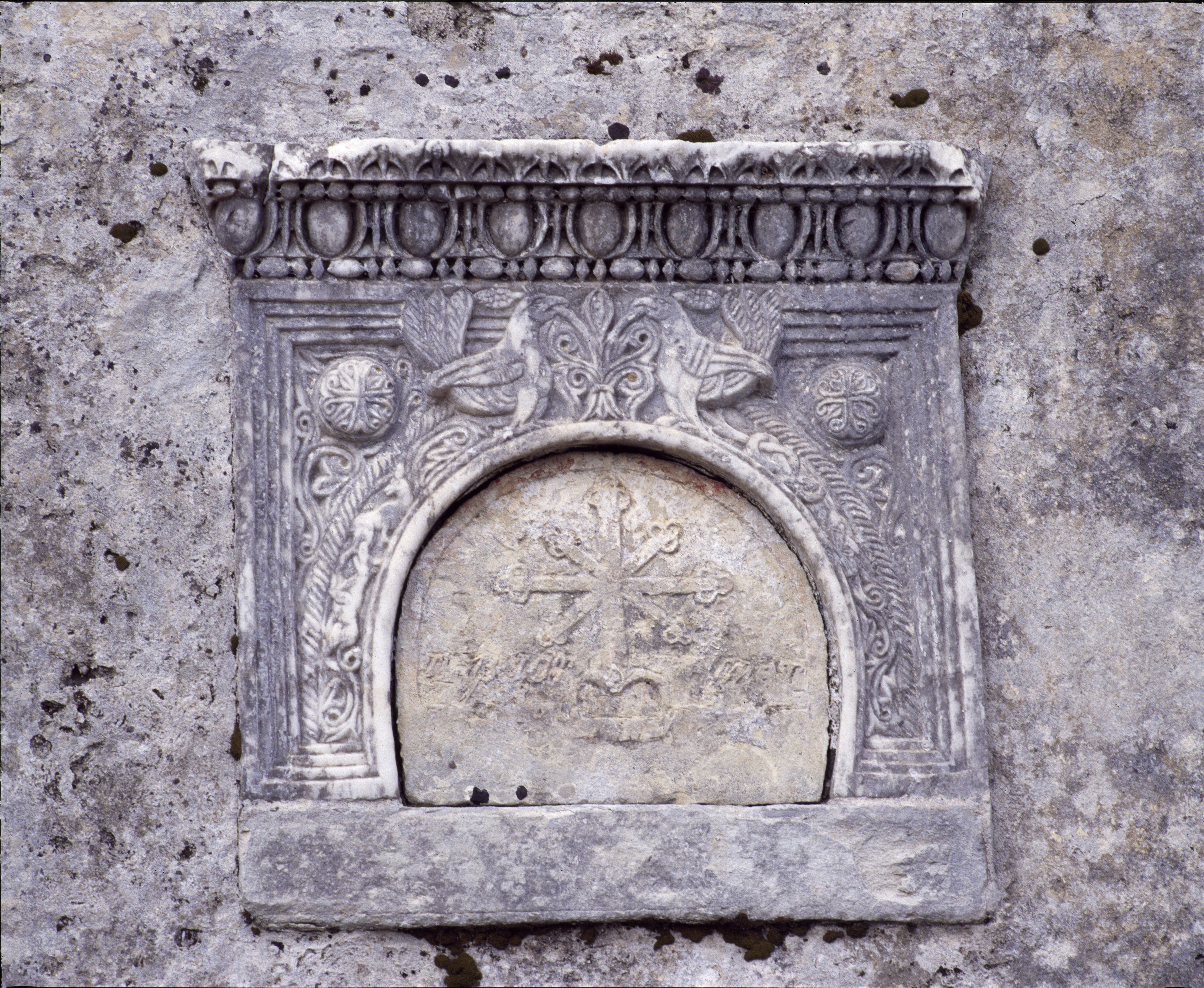 Παναγία Κορωνησίας. Βυζαντινό ανάγλυφο εντοιχισμένο στο κωδωνοστάσιο.