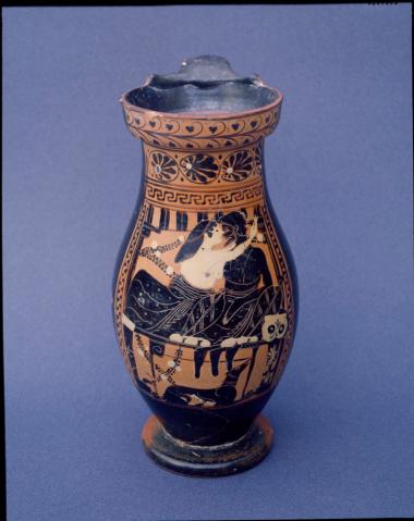 Αττική μελανόμορφη όλπη με σκηνή συμποσίου