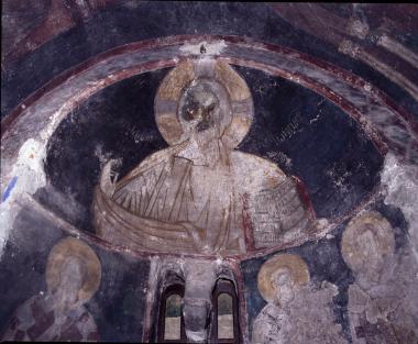 Ο Χριστός ως Παλαιός των Ημερών, τοιχογραφία στην κόγχη του διακονικού.