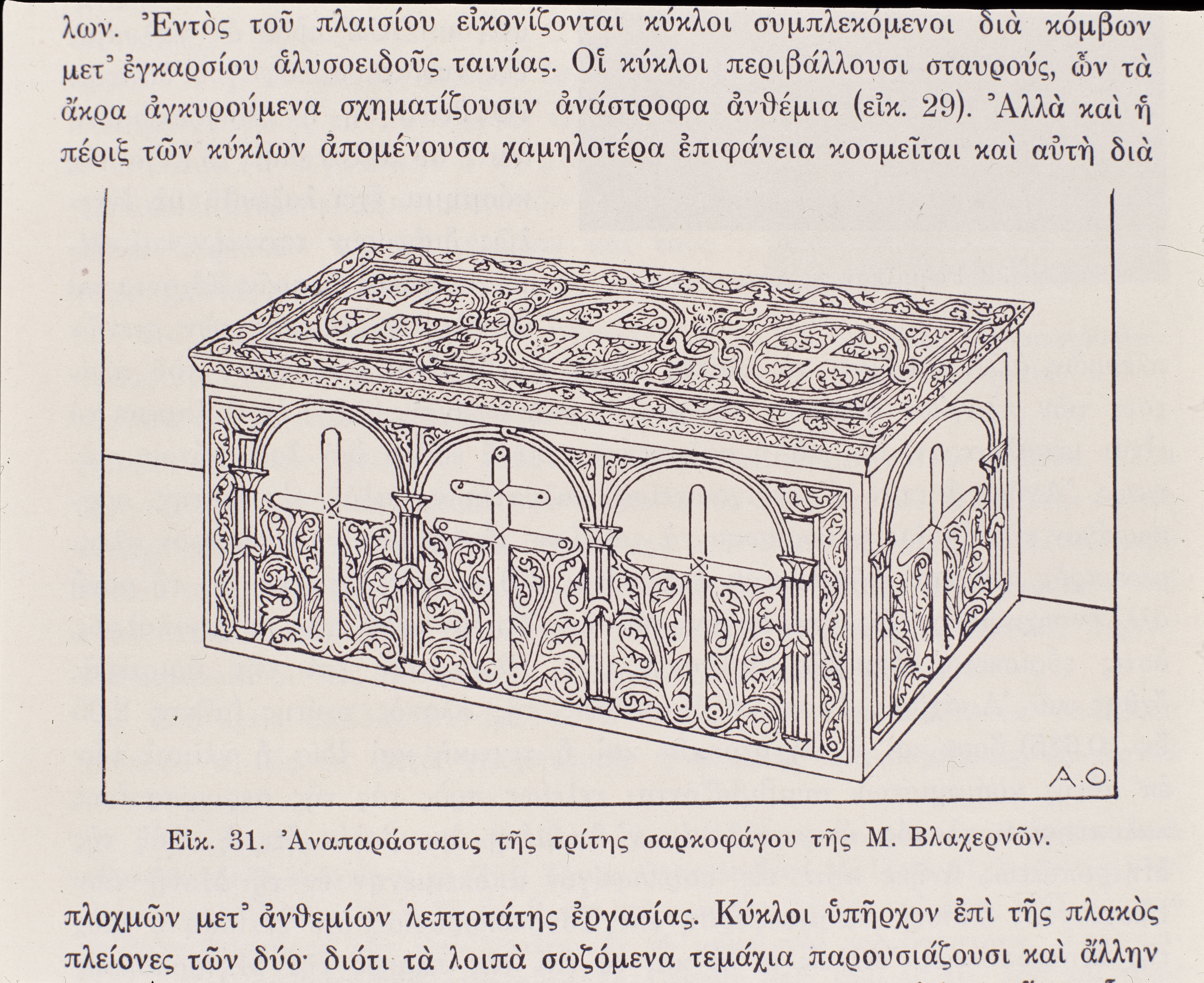 Βλαχέρνα. Σχεδιαστική αναπαράσταση της τρίτης σαρκοφάγου.