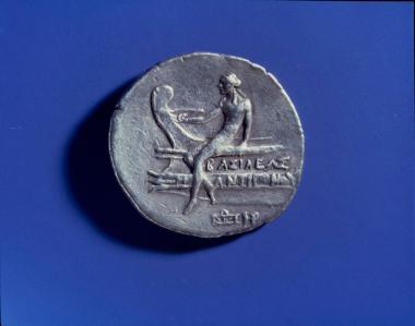Αργυρό τετράδραχμο Αντιγόνου Δώσωνος. Οπισθότυπος: Απόλλων