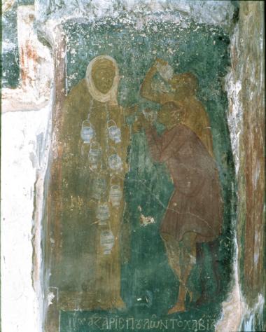 Η λιτανεία της εικόνας της Οδηγήτριας, τοιχογραφία στο νάρθηκα, λεπτομέρεια.
