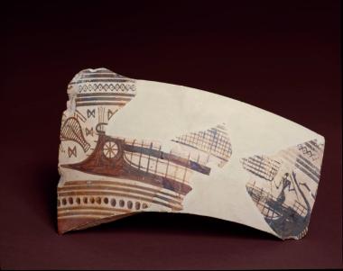 Θραύσμα αττικού γεωμετρικού κρατήρα με παράσταση πλοίου.