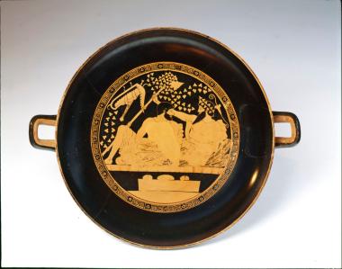 Αττική ερυθρόμορφη κύλικα. Ηρακλής και Διόνυσος. Έργο Δούριδος.
