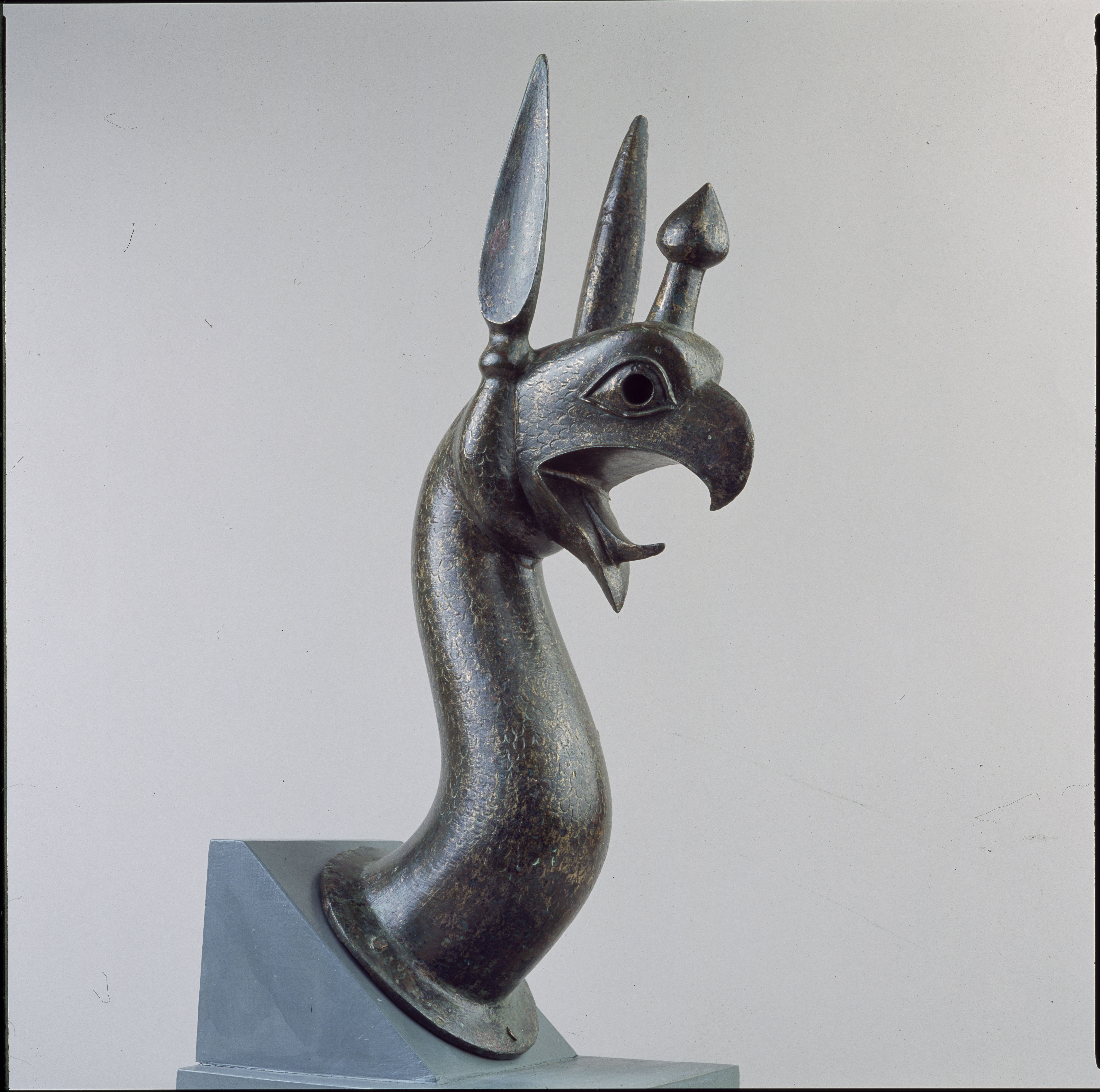 χάλκινη προτομή γρύπα από τη διακόσμηση κινητού λέβητα