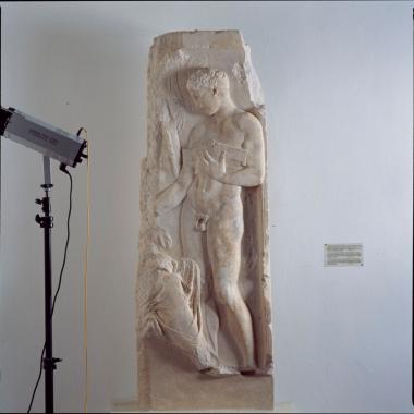 Επιτύμβια στήλη που απεικονίζει γυμνό νέο