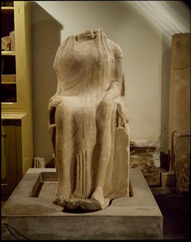 Καθιστό άγαλμα γυναικείας μορφής αφιέρωμα του Αιάκη στη θεά Αθηνά