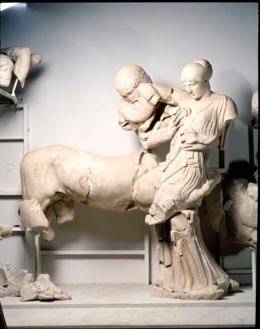 Ο Κένταυρος Ευρυτίων(;) αρπάζει τη Δηιδάμεια από το Δυτικό αέτωμα του ναού του Δία