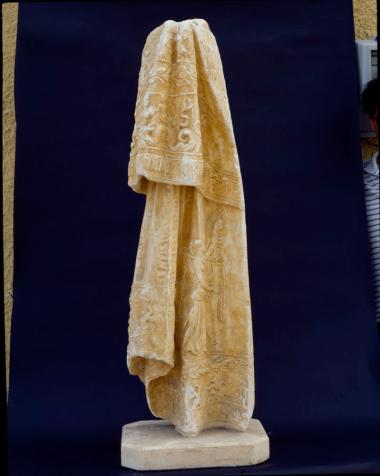 Μαρμάρινη πτυχωτή παρυφή ενδύματος από το σύνταγμα του Δαμοφώντα