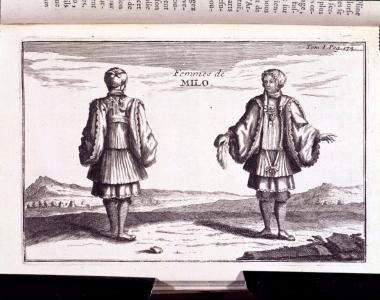 Γυναίκες της Μήλου με τοπική ενδυμασία από το βιβλίο του Tournefort