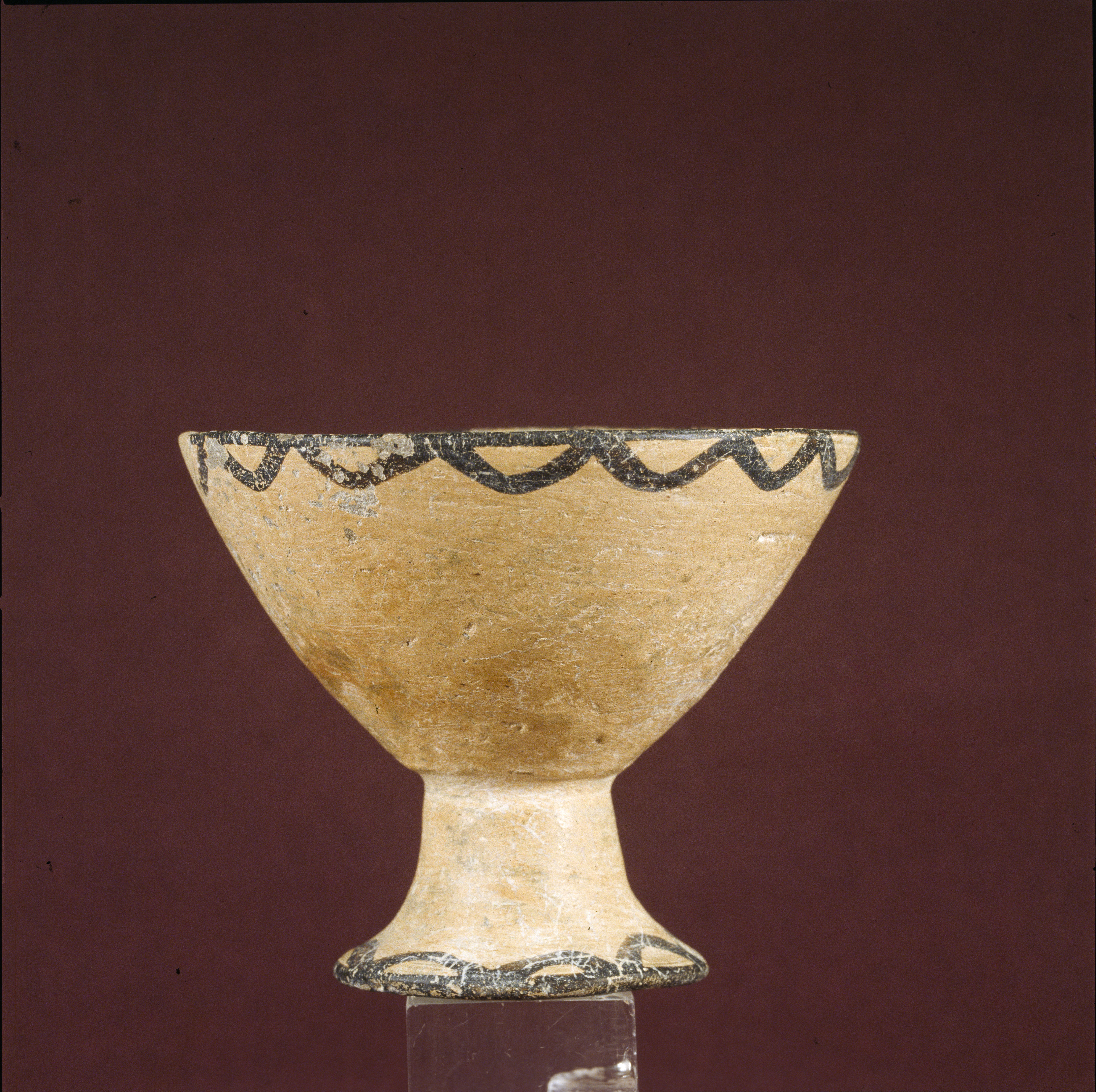 Βαθιά πήλινη φιάλη με πόδι και ζωγραφιστή διακόσμηση