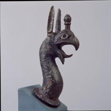 χάλκινη προτομή γρύπα από τη διακόσμηση κινητού λέβητα