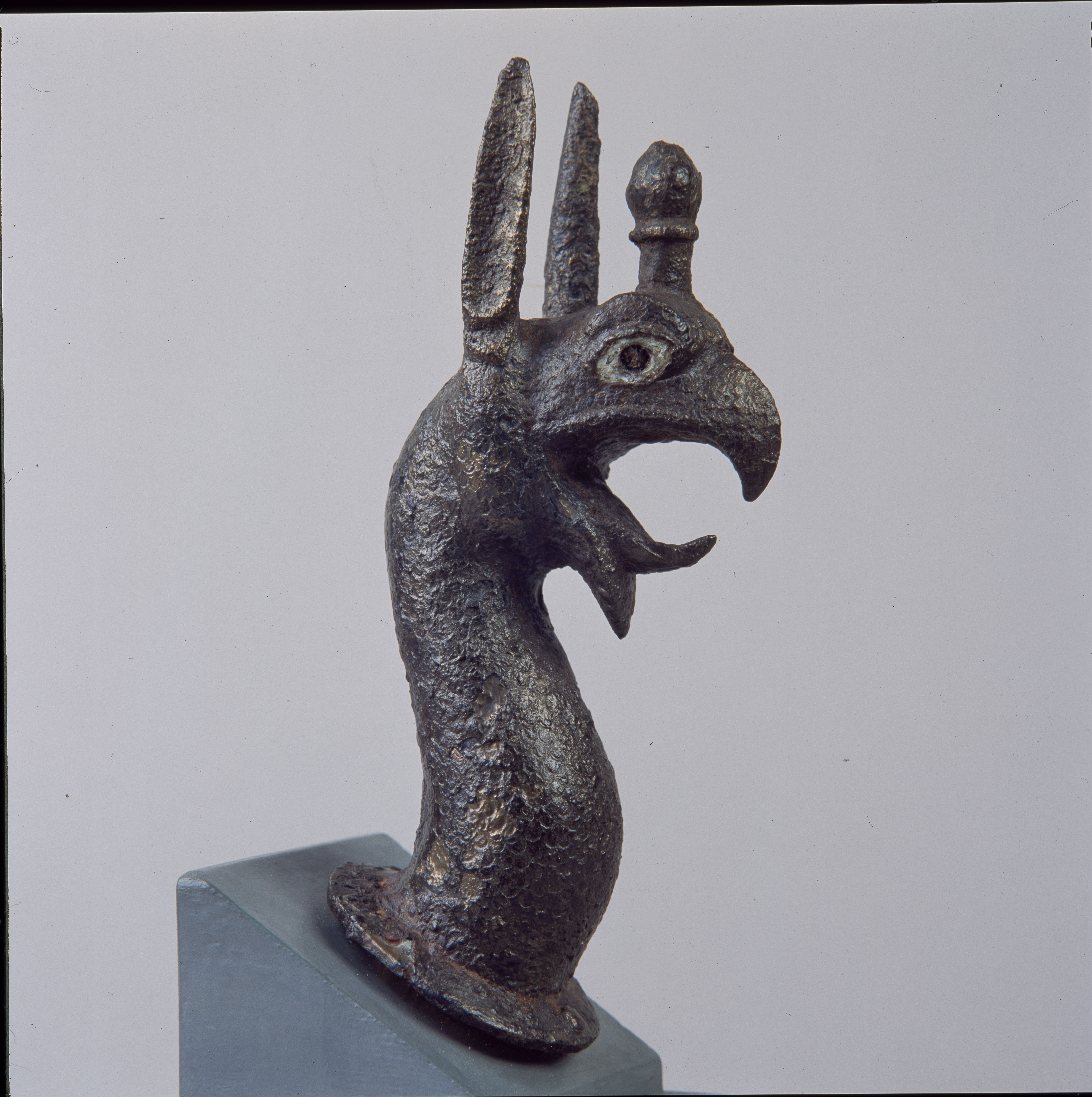 χάλκινη προτομή γρύπα από τη διακόσμηση κινητού λέβητα