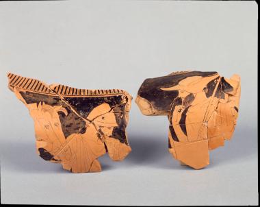 Όστρακα από αττικό κρατήρα με παράσταση αναχώρησης πολεμιστών