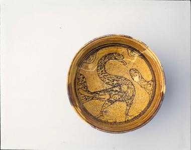 Πήλινη εφυαλωμένη κούπα με παράσταση πτηνού