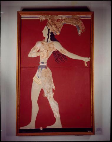 Αναστηλωμένη τοιχογραφία του Πρίγκιπα με τα Κρίνα από το ανάκτορο της Κνωσού