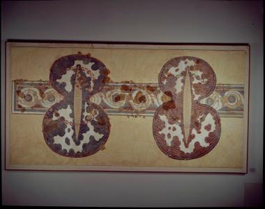 Τμήμα τοιχογραφίας από τον Εξώστη με τις Ασπίδες στο Μεγάλο Κλιμακοστάσιο ανακτόρου Κνωσού