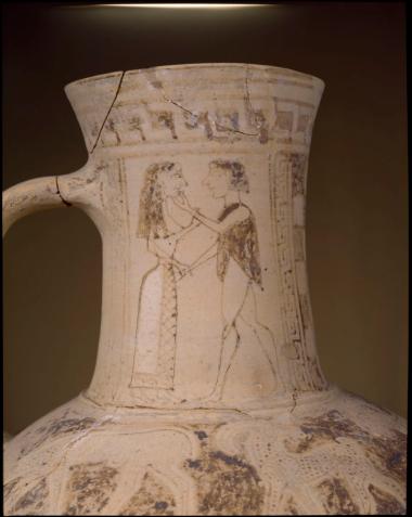 Πήλινο αγγείο. Λεπτομέρεια της παράστασης του λαιμού με ζευγάρι άνδρα και γυναίκας