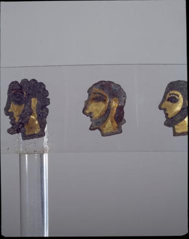 Ανδρικά προσωπεία από χρυσό και νιέλλο από το ανάκτορο του Νέστορος