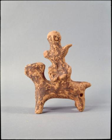 Πήλινο ειδώλιο έφιππης γυναικείας μορφής από παιδική ταφή στο Γαβαλομούρι Κισάμου