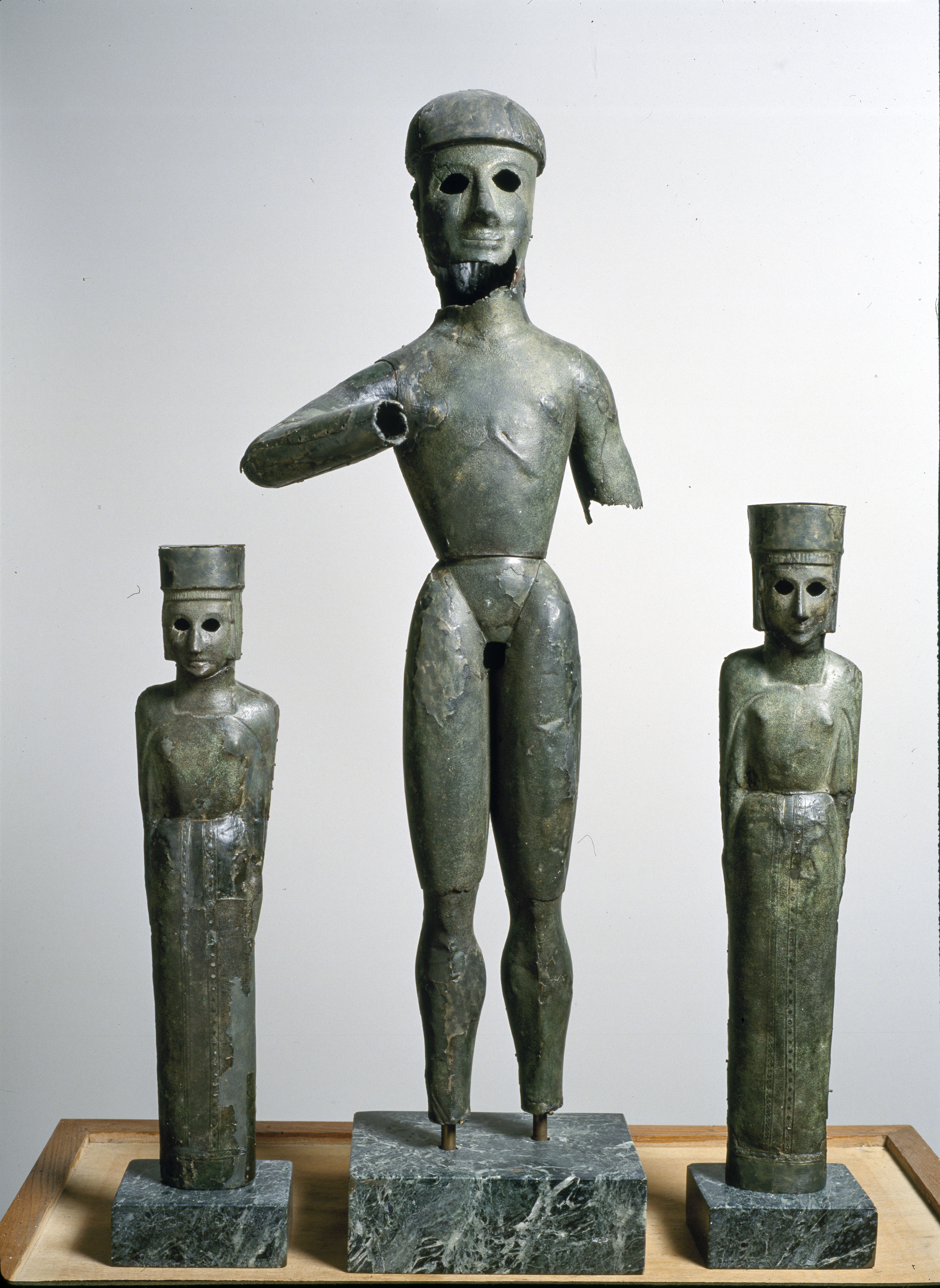 Η "Απολλώνια Τριάδα", τρία χάλκινα αγαλμάτια από σφυρήλατο έλασμα (Απόλλωνας, Λητώ και Άρτεμις)
