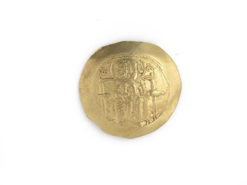 Χρυσό επέρπυρον, σκυφωτό. Ισαάκιος Β' Άγγελος. Νομισματοκοπείο: Κωνστατνινούπολις.