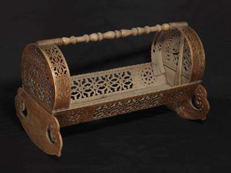 Ξύλινη κούνια μωρού - σαρμανίτσα, σκαλιστή.