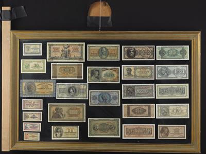 Πίνακας με χαρτονομίσματα από διάφορες εποχές.