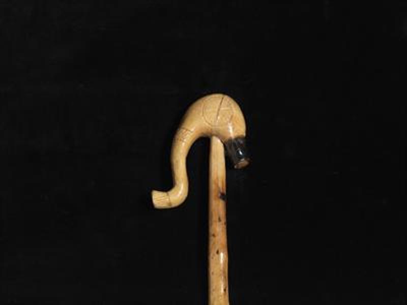 Ξύλινη γκλίτσα με εγχάρακτη και γραπτή διακόσμηση.