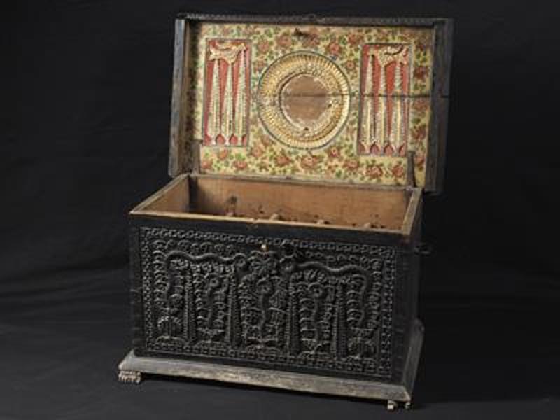 Ξύλινη κασέλα, σκαλιστή εσωτερικά και εξωτερικά.