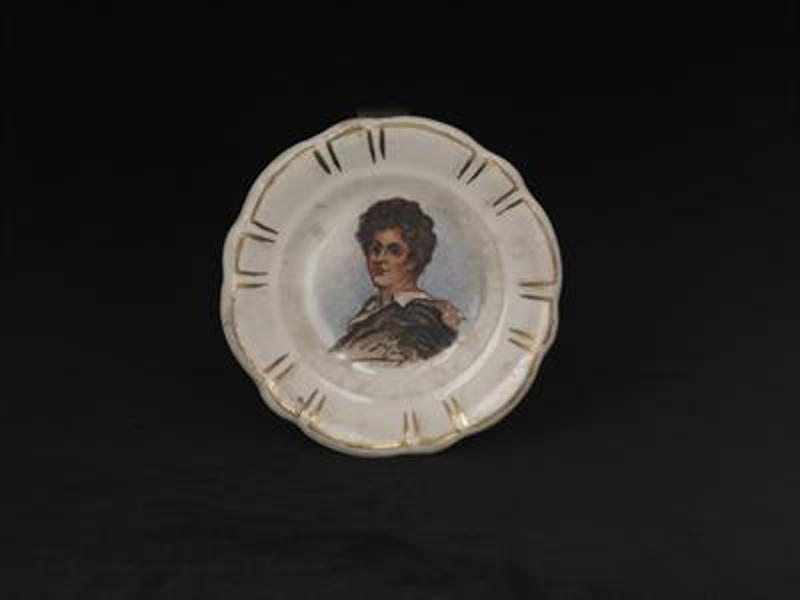 Πιάτο από φαγεντιανήε με έντυπη έγχρωμη ζωγραφιά ιστορικής εικονογραφίας.
