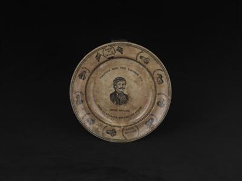 Πιάτο από φαγεντιανή με έντυπη ζωγραφιά ιστορικής εικονογραφίας.
