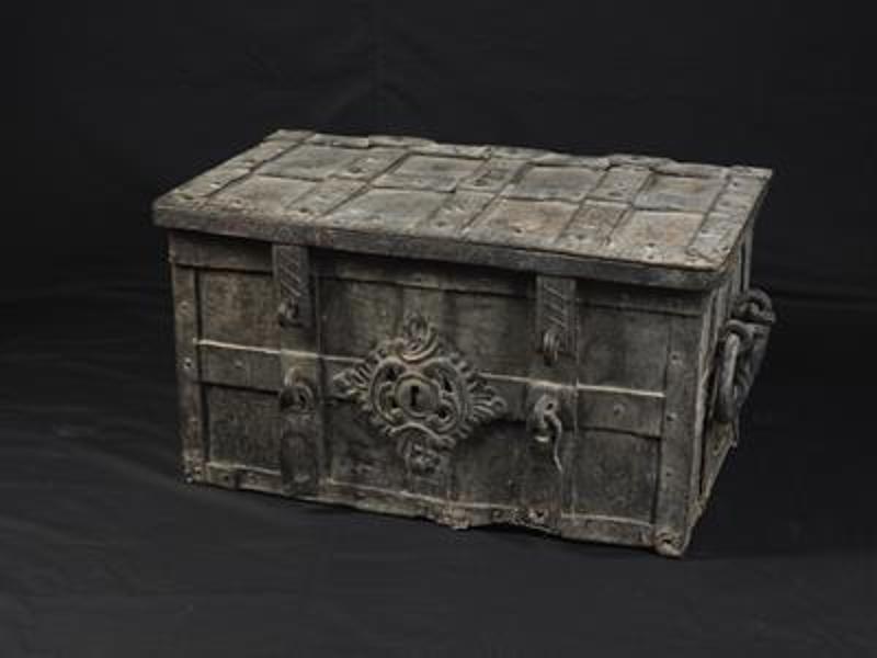 Σιδερένια κασέλα - χρηματοκιβώτιο, με χειρολαβές .