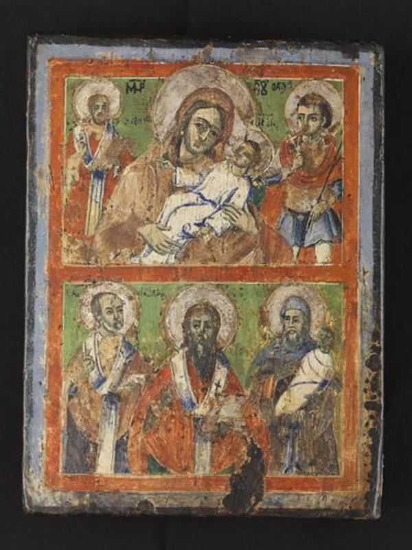 Δίζωνη εικόνα με την Παναγία Βρεφοκρατούσα και αγίους. [Δωρεά Εύης Μελά 2010].
