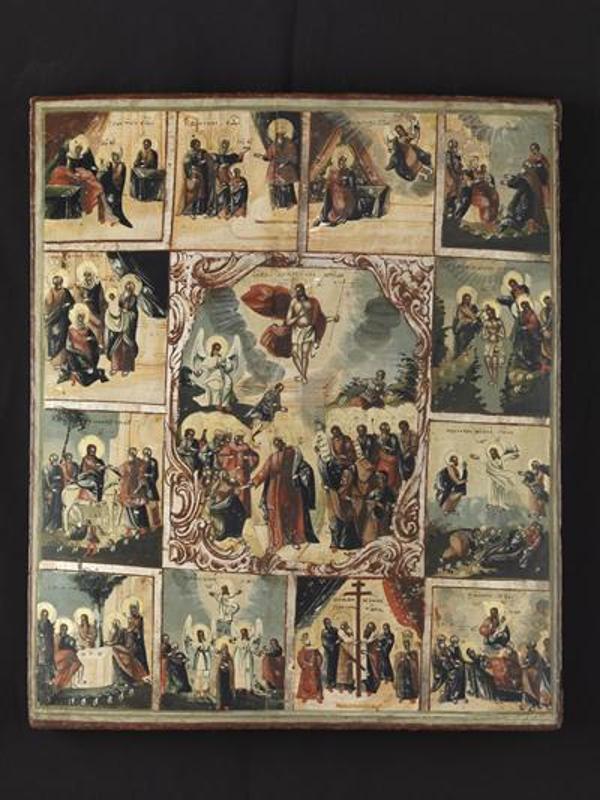 Ανάσταση του Χριστού και εις Άδου Κάθοδος με σκηνές Δωδεκάορτου.