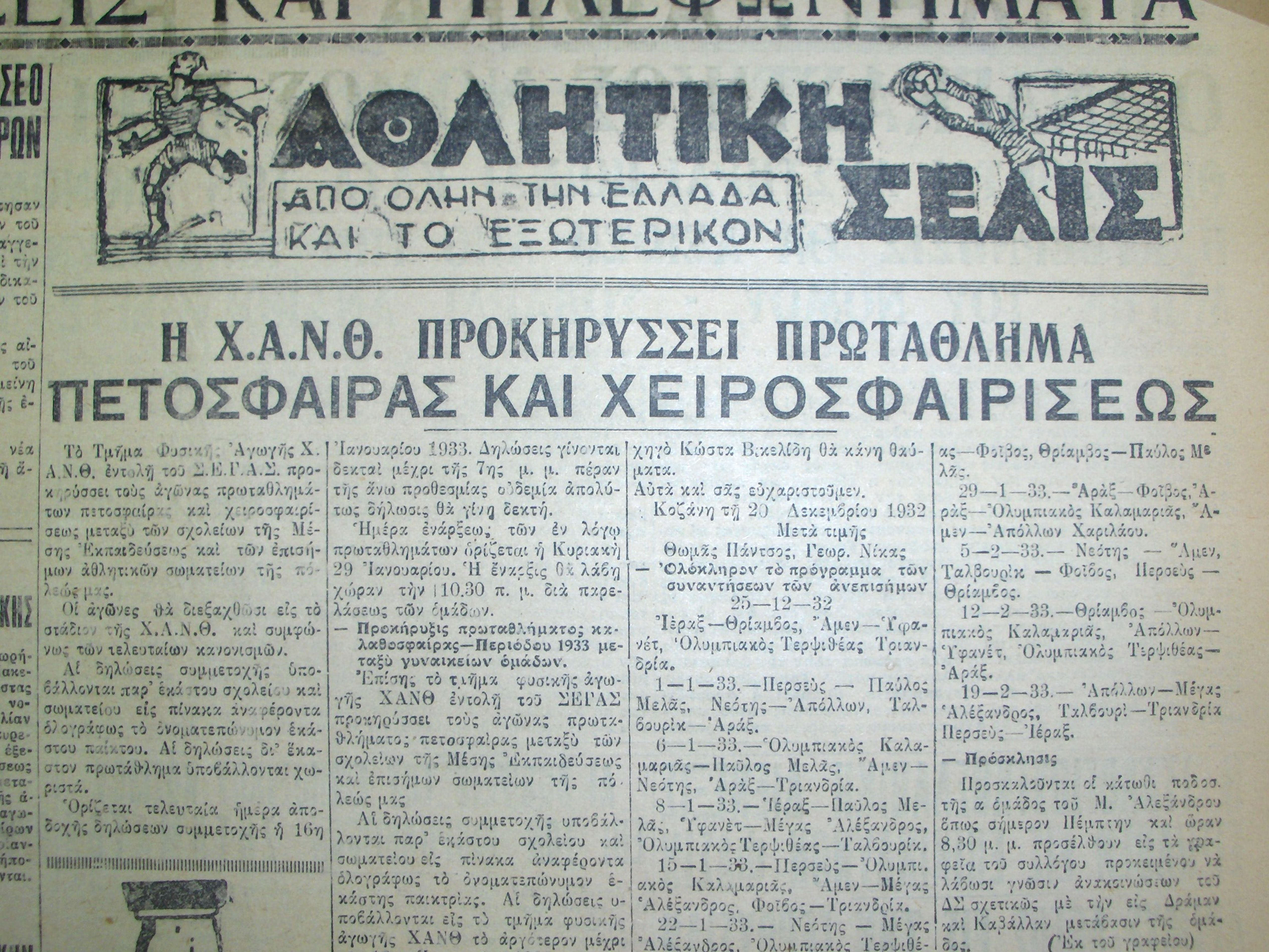 Απόκομμα εφημερίδας σχετικά με την ίδρυση ομάδας Χειροσφαίρισης (HANDBALL) της ΧΑΝΘ.tif 1