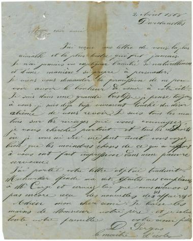 Φιλική επιστολή του D. Sergus στο νεαρό Πάνο Κουρτζή