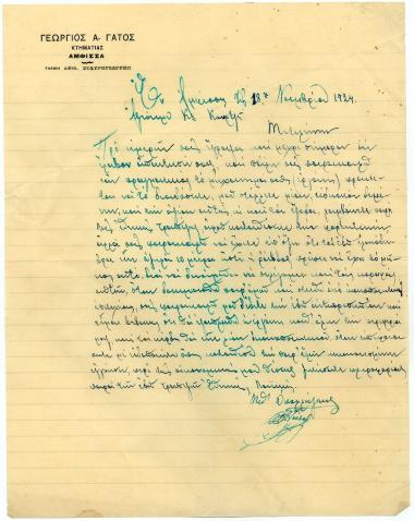 Επιστολή ενδιαφέροντος για την ελαιοκομιστική μηχανή Εργάνη από την Άμφισσα
