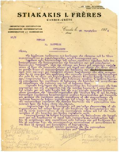 Εμπορική επιστολή για αποστολή της ελαιοκομικής μηχανής Εργάνης στα Χανιά