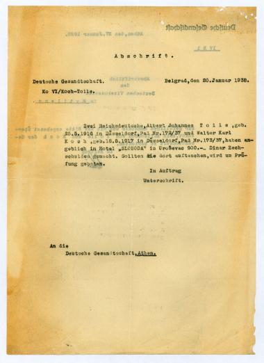 Γερμανική Κυβέρνηση, Πρεσβεία Αθηνών